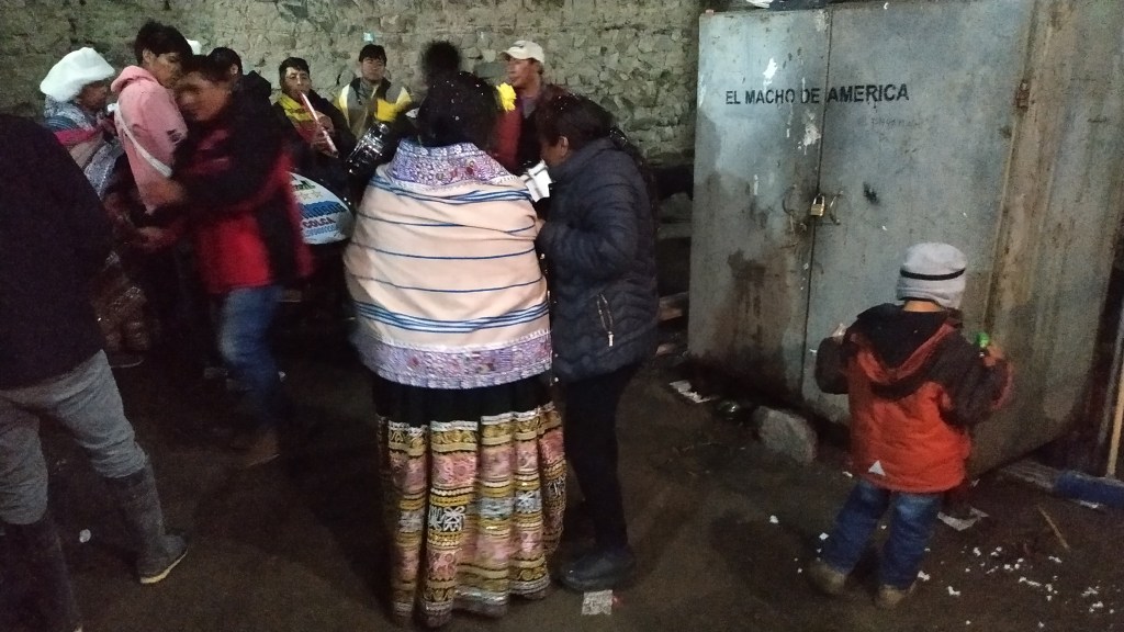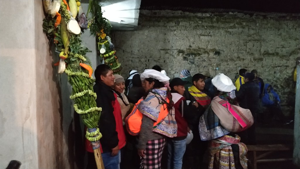 Este año fue la mayordoma, ella misma fue quien nos invitó tanto a mí como al resto de personas del grupo a su casa, donde concluyó la fiesta con una cena colectiva donde se sirvió el plato típico: alpaca con chuño y papa, arroz y choclo.