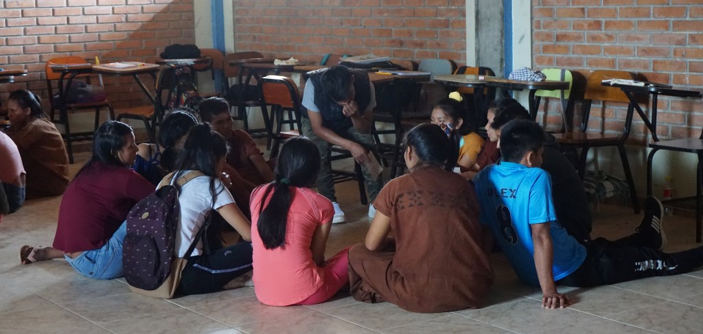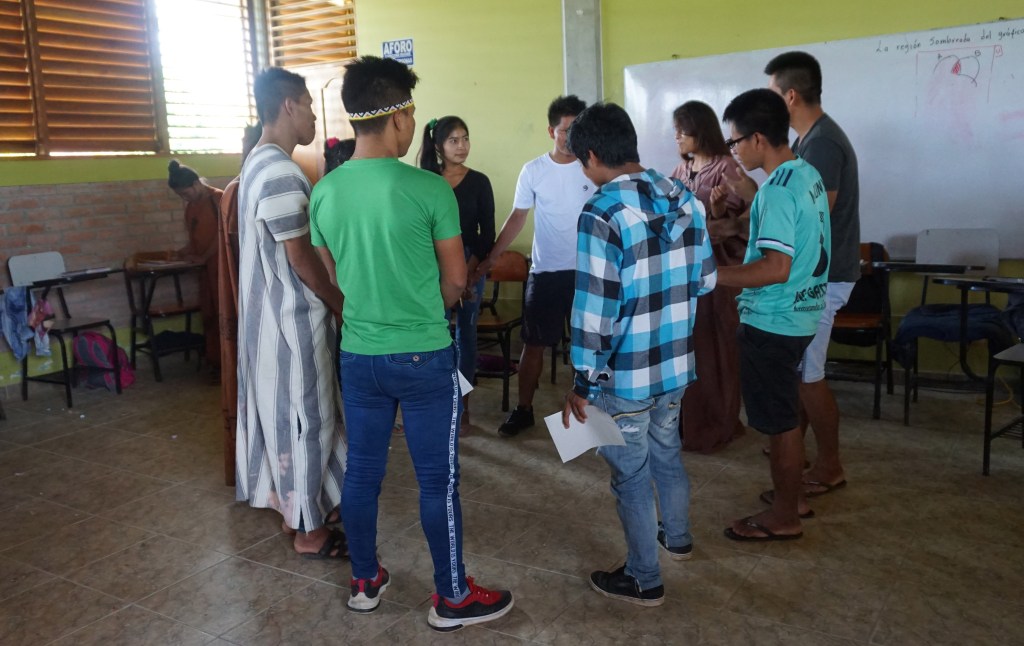 El día 18 de Febrero de 2020 comenzaron los encuentros y talleres en UCSS Nopoki, Universidad Católica Sedes Sapientiae. Esta universidad intercultural indígena ubicada en Atalaya (Ucayali) es un lugar de encuentro entre diferentes culturas originarias vinculado a la pedagogía superior. Es ahí que tuve la gran suerte de vivir unas semanas intercambiando con estudiantes por medio de talleres vinculados al proyecto reflexionando y pensando creativamente para/con el río Ucayali que atraviesa la vida cotidiana no sólo de Atalaya sino de muchas de las comunidades originarias de las que provienen cada unx de ellxs.