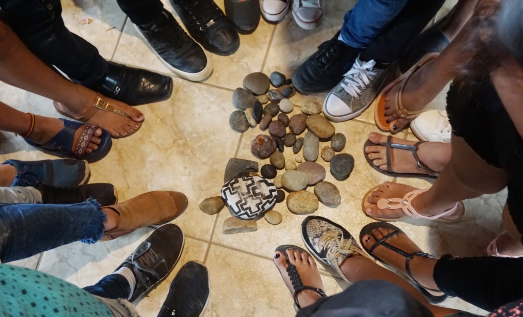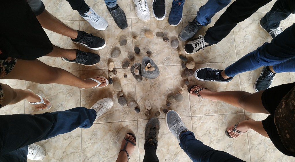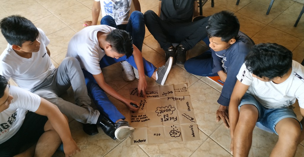 Los encuentros se adentraron en el sentipensar desde la multisensorialidad, donde el pensamiento crítico y la experiencia ligada a lo circunstancial tiene protagonismo. Ese diálogo de saberes que parte de muy adentro, ese entretejerse desde ser colectividad. El río por tanto fue el punto de partida, siendo el foco de inspiración del proyecto, y así los grupos fueron articulando saberes situados, sintiendo el río, siendo cuerpos de agua que fluyen en el espacio, cuerpos que son participes de ciclos tangibles e intangibles. Es así, que la mirada atenta al proceso es importante donde la incertidumbre es el elemento guía de los aprendizajes.