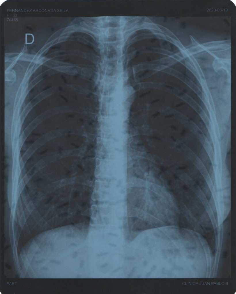 Es así que siendo forastera en territorio amazónico y sus relaciones ecosistémicas me expuse a establecer un encuentro con la bacteria comúnmente conocida como Klebsiella pneumoniae. El encuentro se sucedió en algún lugar entre Atalaya y Pucallpa posiblemente en el viaje en el río en Marzo de 2020. Esta bacteria entró en mi cuerpo por las vías respiratorias y se acumuló creando un desequilibrió que desestabilizó el sistema inmunitario a través de graves problemas respiratorios en forma de neumonía crónica. Una neumonía que apareció en vísperas de la llegada de la pandemia Covid 19 a la selva amazónica; estos síntomas similares al virus ocasionaron confusión en numerosas ocasiones.